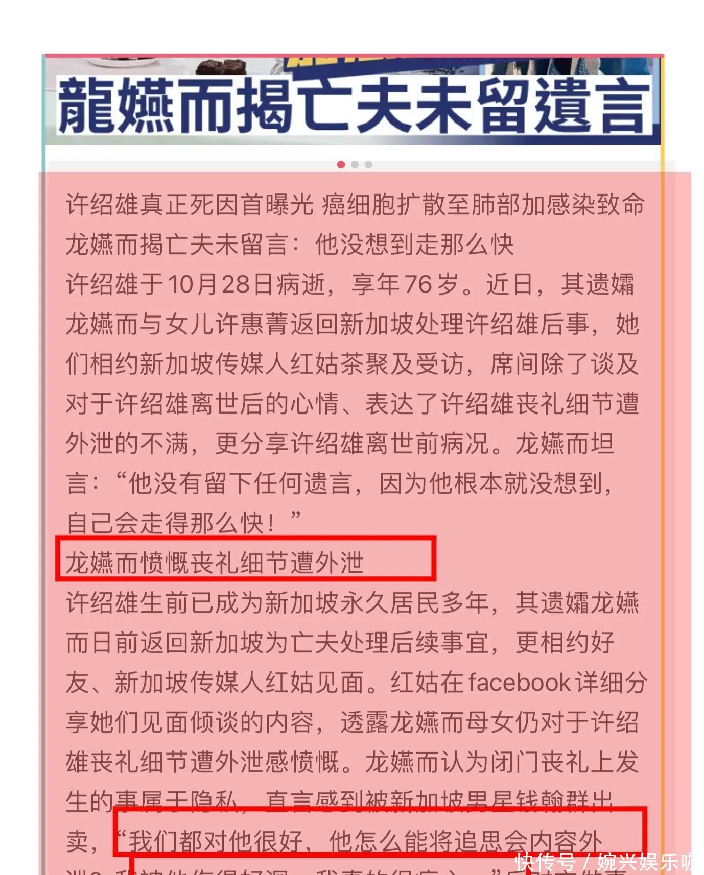 近日许绍雄老婆和女儿回新加坡处理许绍雄身后事,接受了访问!