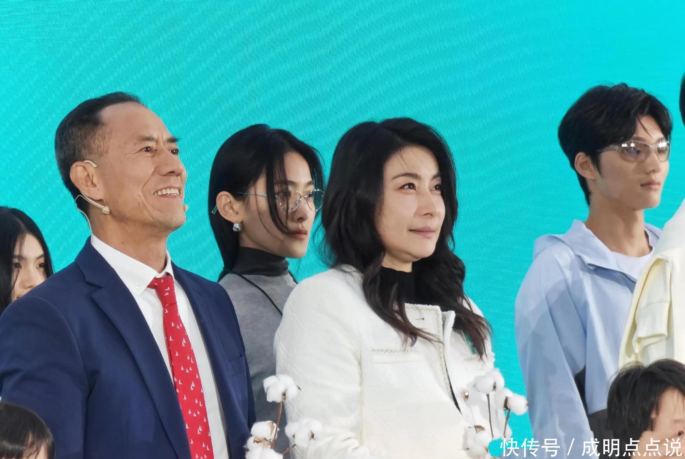 活动上还有小朋友,郭晶晶跟他们互动超有爱,眯着眼睛笑、打招呼的样子,就跟看自己孩子似的。有个小帅哥收到她送的 “棉花花束” 时,那受宠若惊的模样,可可爱爱的,特别有意思。 合影的时候,郭晶晶站 C 位那是肯定的,现在不管参加啥活动,她都能稳稳站在 C 位,影响力是真的强。而且她现在气质更平稳柔和了,说话做事都不慌不忙的,让人觉得很舒服。