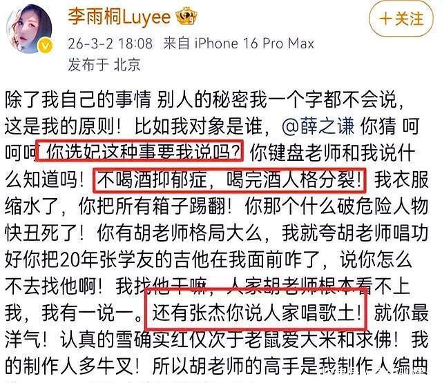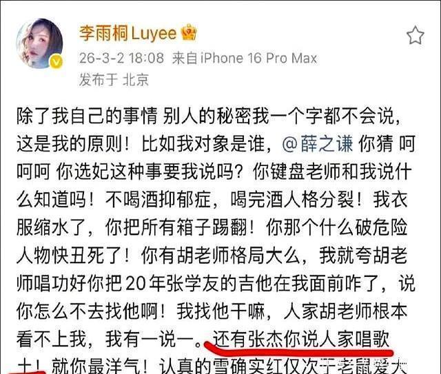 事情的起因,其实就是薛之谦又被前女友李雨桐公开锤了。这次不是简单情感纠葛,而是连出轨、重婚都搬到台面上。