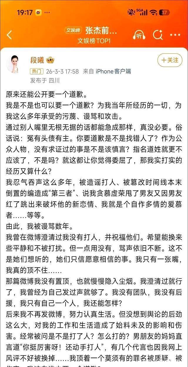 所以事情很快爆发了反转。张杰的前女友段曦,沉默了十几年,终于也发声了。她不是简单的发牢骚,而是把自己多年来的辛酸细节都说了出来:年轻时和张杰在上海租小房子,自己打几份工,甚至卖车卖房支持对方,最后换来一句分手。
