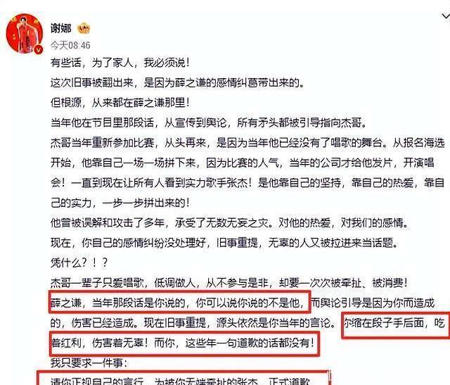 网友们正看得热火朝天,谢娜忽然杀出,直接点名让薛之谦为当年“综艺里暗搓搓说张杰靠女友上位”的梗道歉。这种操作,放以前顶多算护夫,可劲儿撕对家。偏偏现在舆论的风向早变了,网友们可不像以前那么好糊弄。